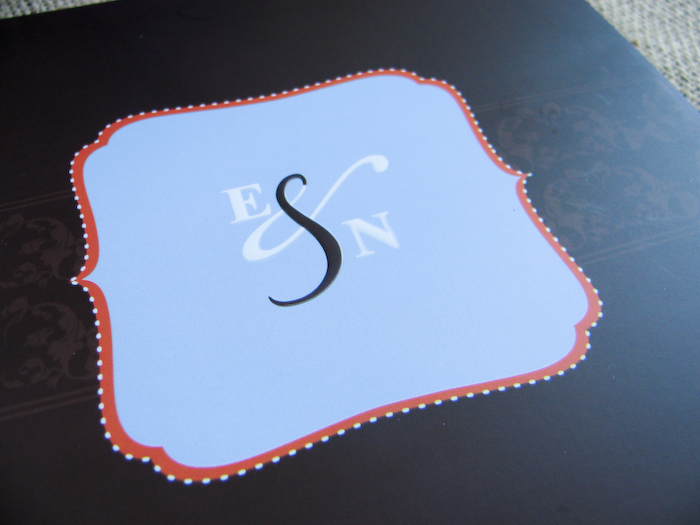 A chic, fun and contemporary wedding at a gorgeus city club in the heart of Atlanta. Nita and Edward shared the same last name initial, which makes a fun monogram. The invitation is a combination of the bride's fondness of "French-ish" decorative elements and the couple's modern city wedding style.